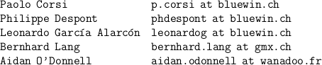 Email Addresses. We apologise for the inconvenience of not giving direct mail links. We just have to protect ourselves from junk mail.